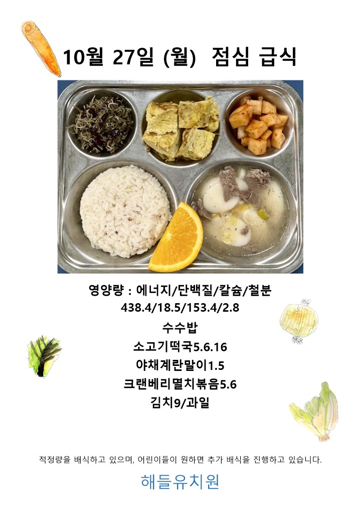 오늘의 급식 - 10월 27일 점심