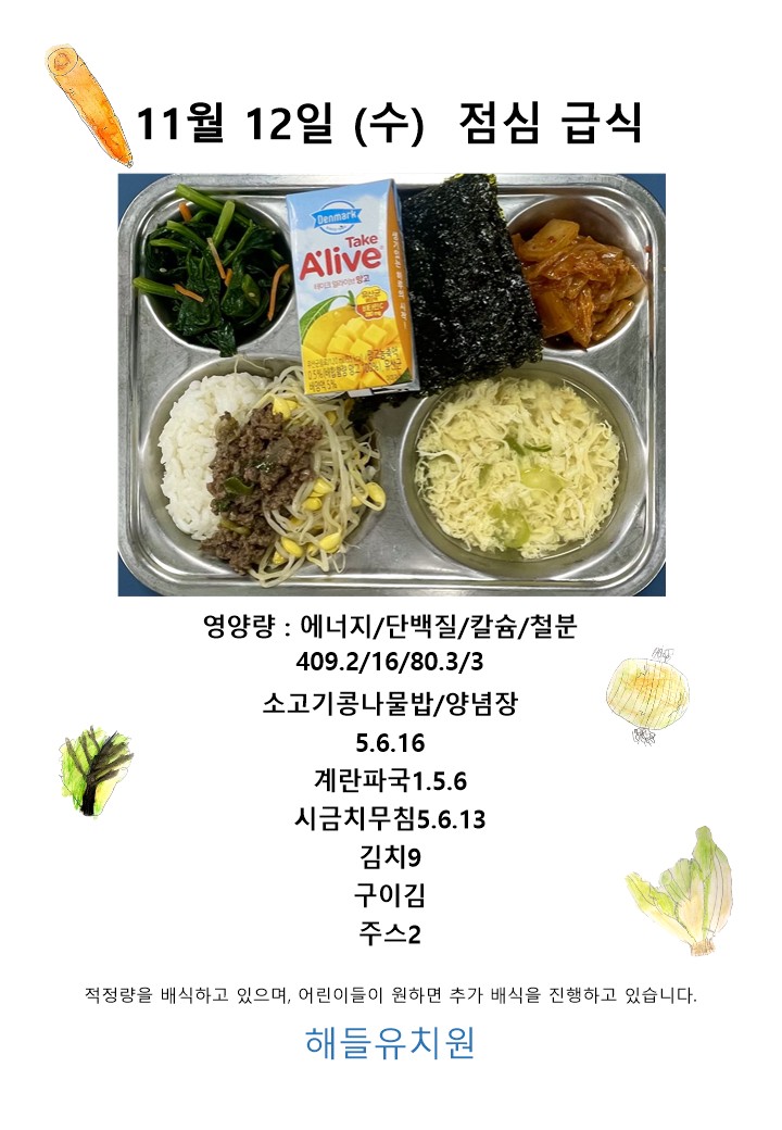 오늘의 급식 - 11월 12일 점심
